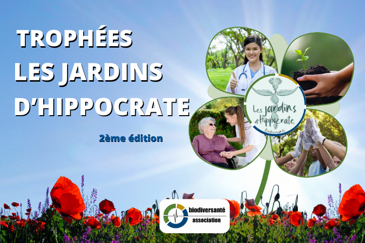 Trophées Les Jardins d’Hippocrate, 2e édition, l’événement nature & santé 2024, à l’initiative de biodiversanté. Un événement national inédit organisé pour valoriser et récompenser les établissements de santé ayant mis en place des actions responsables exemplaires dans leurs aménagements paysagers ou via le contact à la nature, pour le bien-être de la biodiversité, des équipes et des patients-résidents.
