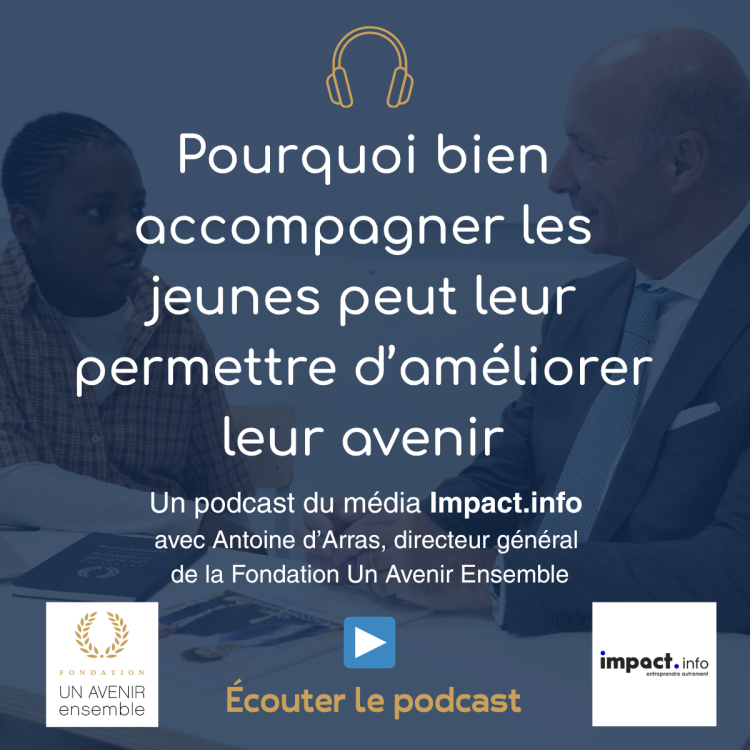 Le média Impact.info consacre un épisode de son podcast à la Fondation Un Avenir Ensemble, qui depuis près de vingt ans œuvre pour l’égalité des chances des jeunes boursiers. Dans cet entretien, Antoine d’Arras, Directeur général de la Fondation, revient sur la conviction qui guide l’action de l’institution : la rencontre entre générations peut changer une trajectoire.