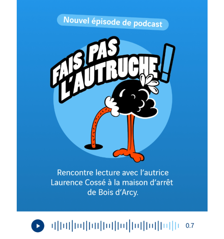 Dans ce podcast de la collection Fais pas l'Autruche !, la Fondation VINCI Autoroutes propose une immersion totale dans un univers méconnu, la prison. L’association « Lire pour en sortir » s’est rendue à la Maison d’arrêt de Bois-d’Arcy pour y réaliser des ateliers et une rencontre d'auteur. Pour ce rendez-vous, le livre choisi, écrit par Laurence Cossé, raconte un célèbre accident de la route, celui de Lady Di. Cet épisode retrace de riches échanges entre détenus, bénévoles, auteur et la Fondation VINCI Autoroutes.