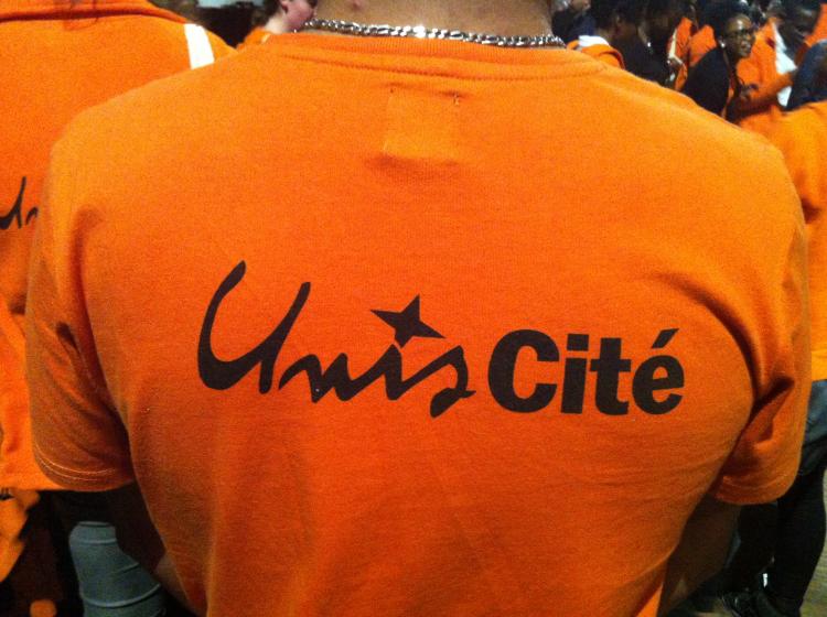 Dans l'ancienne « halle aux bœufs », des centaines de jeunes habillés en orange et noir grouillent, se mêlant à quelques rares un peu moins jeunes en costumes ou du moins, sans l'uniforme Unis-Cités. François Hollande arrive sous des tonnerres d'applaudissement en compagnie de Marie Trellu-Kane, cofondatrice et présidente de l'association . 2 000 jeunes, ça fait du bruit. Il y a des stands de nourriture, des boissons, des stands tatouages ou badmington. Des ballons. On se croirait à un concert, à une très grande kermesse. Ou à un meeting politique, justement.