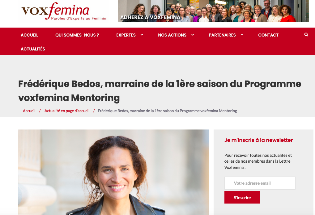 Voxfemina lance Voxfemina Mentoring, un programme de mentorat dont Frédérique Bedos, fondatrice du Projet Imagine, est la marraine.