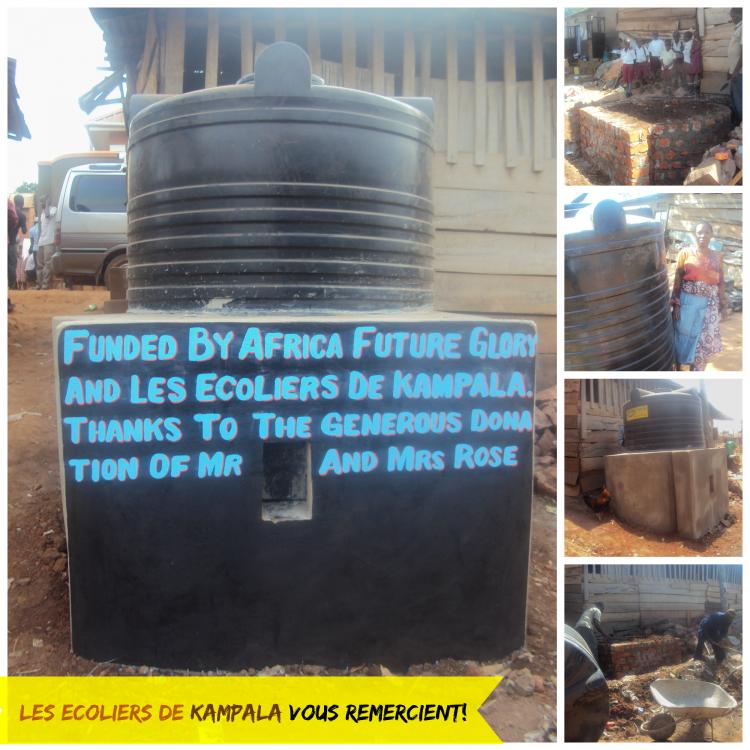 L'installation d'une citerne de récupération des eaux de pluies à l'école du bidonville de Kibuye permet désormais un accès direct et gratuit à une eau plus saine à 80 enfants ougandais. L'eau est un élément vital mais aussi un levier de développement. L'accès à l'eau est un droit humain. L'association Les Ecoliers de Kampala est fière d'y contribuer et remercie chaleureusement ses généreux donateurs.